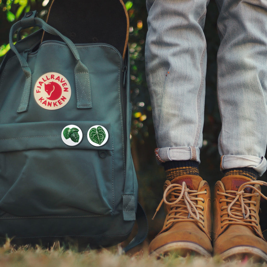 Button mit Anthurium Clarinervium Motiv. Perfekt als Geschenk für alle Pflanzenmuddis - und vaddis. Kann auf Jacken, Taschen, Rucksäcken ect. angebracht werden.